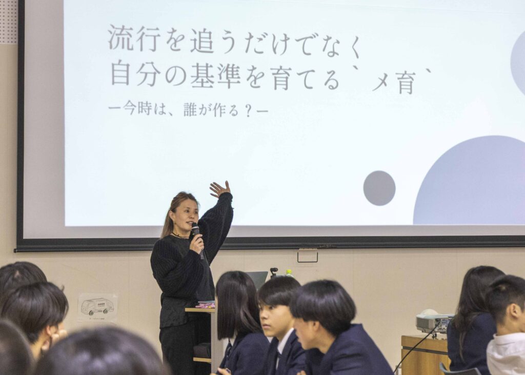 時代ごとのトレンドについて解説するイガリさんのお話に、生徒のみなさんは興味津々の様子でした。